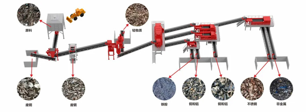 可有效提純廢鋼,回收尾料中遺留的鐵塊、鐵粉、銅、鋁、不銹鋼等金屬,回收效果良好。保障經(jīng)濟(jì)效益,除塵系統(tǒng)確保車間粉塵量滿足濃度要求,整線采用PLC控制,自動(dòng)化程度高。能夠滿足10-40噸/小時(shí)處理需求,回收率高達(dá)95%以上。