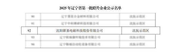 近日,遼寧省科學(xué)技術(shù)廳正式公布《2025年遼寧省第一批擬備案雛鷹瞪羚獨角獸企業(yè)名單》,沈陽隆基憑借持續(xù)創(chuàng)新能力、高速成長態(tài)勢及前瞻戰(zhàn)略布局,成功入選“瞪羚企業(yè)”。