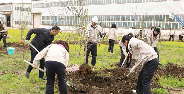 沈陽(yáng)隆基連續(xù)多年開(kāi)展植樹(shù)活動(dòng),梨樹(shù)、杏樹(shù)、李子樹(shù)與蘋果樹(shù)在廠區(qū)扎根生長(zhǎng)。如今“生態(tài)果園”初具規(guī)模,春日梨花與杏花次第綻放,秋日枝頭綴滿豐碩果實(shí)。這片由全體員工共同培育的綠意,既是企業(yè)履行社會(huì)責(zé)任的見(jiàn)證,也是“綠色制造”理念的生動(dòng)注腳。